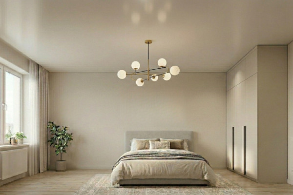 С помощью бесшовных натяжных потолков можно создать идеально ровную поверхность, которая выглядит очень элегантно и дорого. Благодаря тому, что полотна имеют большую ширину (до 5 м), их не приходится накладывать друг на друга. Однако стоит учитывать, что этот вариант подходит только для небольших помещений – если ширина или длина комнаты оказывается больше 5 м, использовать их нельзя.